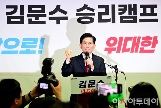 [포토] 주먹 불끈 쥐고 긴급기자회견 갖는 김문수