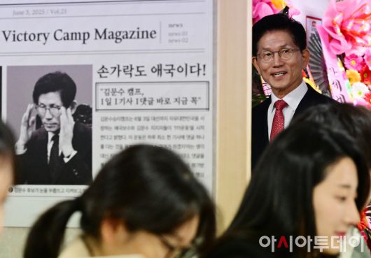 아시아투데이 이병화 기자 = 김문수 국민의힘 대통령 후보가 8일 서울 여의도 캠프 사무실에서 후보 단일화 관련 긴급 기자회견을 하기 위해 입장하고 있다. ⓒ "젊은 파워, 모바일 넘버원 아시아투데이"