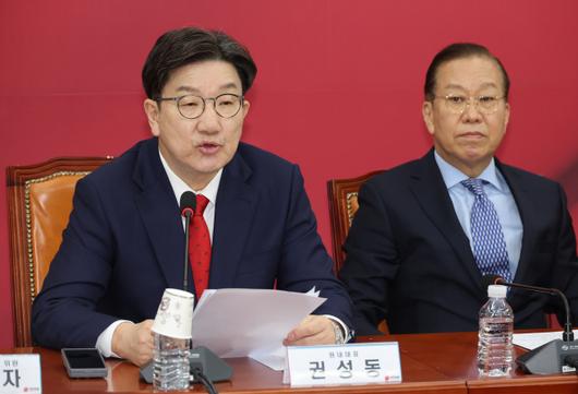 권성동 국민의힘 원내대표가 8일 국회에서 열린 비상대책위원회의에서 발언하고 있다. /연합 |