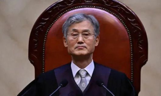 조희대 대법원장이 지난 1일 서울 서초구 대법원에서 열린 더불어민주당 이재명 대선 후보의 공직선거법 위반 사건 상고심 선고 재판에 참석해 있다. 사진공동취재단 |