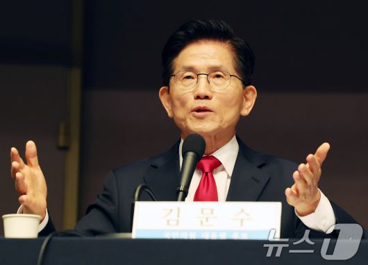 (서울=뉴스1) 박세연 기자 = 김문수 국민의힘 대선 후보가 8일 서울 중구 프레스센터에서 열린 관훈클럽 토론에서 발언을 하고 있다. 2025.5.8/뉴스1