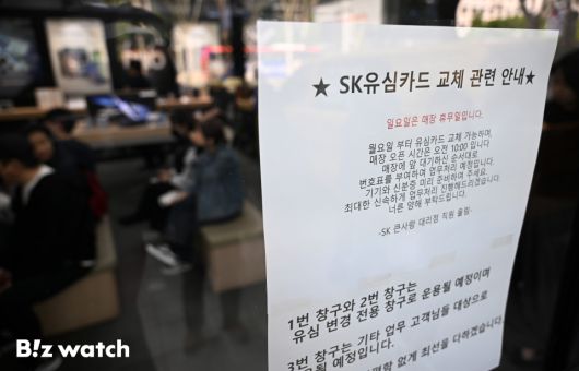 SK텔레콤 대리점에 붙은 유심카드 교체 관련 안내문. /사진=이명근 기자 qwe123@ |