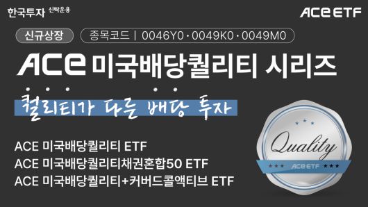 이번 3종 신상품은 △ACE 미국배당퀄리티 ETF △ACE 미국배당퀄리티+커버드콜액티브 ETF △ACE 미국배당퀄리티채권혼합50 ETF 등이다.