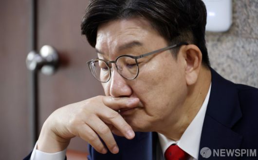 [서울=뉴스핌] 정일구 기자 = 권성동 국민의힘 원내대표가 8일 오전 서울 여의도 국회 원내대표실 앞에서 김문수 당 대선후보와 한덕수 무소속 대선 예비후보 간 단일화를 촉구하는 단식 농성을 하고 있다. 2025.05.08 mironj19@newspim.com