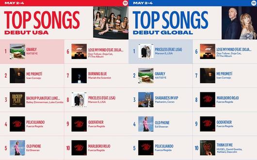 지난 7일 세계 최대 음악 스트리밍 플랫폼 스포티파이 공식 SNS에 따르면, 캣츠아이의 디지털 싱글 'Gnarly'가 '톱 송 데뷔(Top Songs Debut)' 차트(5월 2~4일 집계 기준)에서 미국 1위, 글로벌 2위를 차지했다.