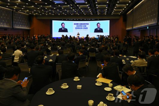(서울=뉴스1) 국회사진취재단 = 이재명 더불어민주당 대선후보가 8일 오전 서울 중구 대한상공회의소에서 열린 대선후보 초청 경제5단체장 간담회에서 발언하고 있다. 2025.5.8/뉴스1