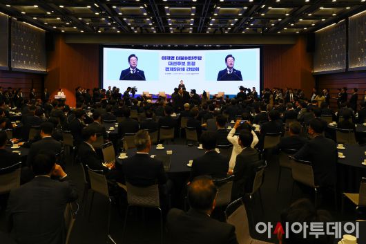 이재명 더불어민주당 대선후보가 8일 오전 서울 중구 대한상공회의소에서 열린 대선후보 초청 경제5단체장 간담회에서 발언하고 있다. /국회사진취재단