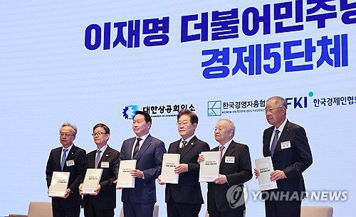 이 후보는 이날 대한상공회의소에서 한국경제인협회·한국무역협회·한국경영자총협회·대한상공회의소·한국중견기업연합회가 개최한 '대선후보 초청 간담회'에서 "다 (노사가) 대화하고 준비해야 한다"며 이같이 밝혔다.