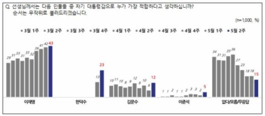 5월 2주차 차기 대통령 적합도 여론조사. 2025.05.08 [그래픽=NBS] |