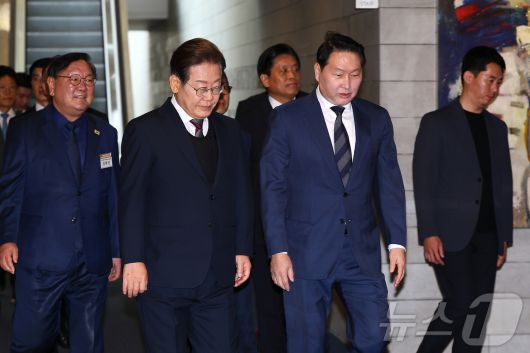 경제5단체장 간담회 참석하는 이재명·최태원