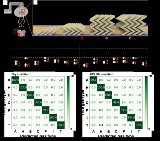이번 개발은 극한의 고습도 환경에서도 99.5% 이상 정확도로 다종 가스를 분류가 가능하다.