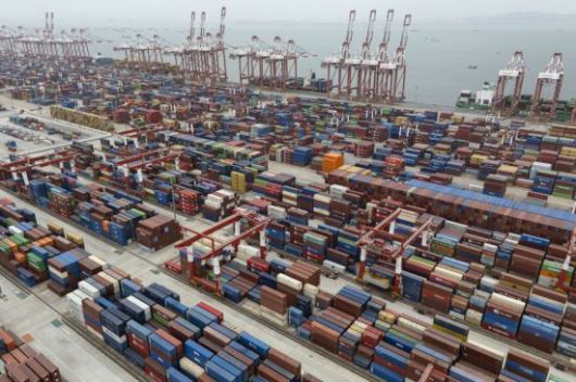지난달 17일(현지시간) 중국 광저우 항에 쌓여 있는 컨테이너들의 모습. AP연합뉴스 |