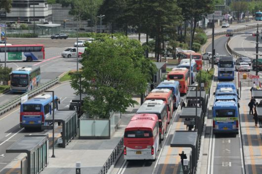 한국노총 전국자동차노조연맹은 8일 전국 대표자회의를 열고 서울, 부산, 인천, 경기 등 22개 지역 전국자동차노동조합연맹 산하 시내버스 노조 노사교섭 결렬 시 오는 28일 동시 총파업을 예고했다. 사진은 8일 서울역 앞 버스환승센터 정류장. 연합뉴스 |