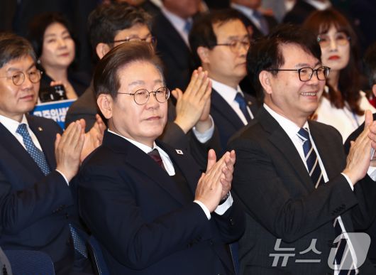 (서울=뉴스1) 김민지 기자 = 이재명 더불어민주당 대통령 후보가 8일 오후 서울 영등포구 중소기업중앙회에서 열린 선거대책위원회 직능본부 민생정책 협약식에서 손뼉을 치고 있다. 2025.5.8/뉴스1kimkim@news1.krCopyright ⓒ 뉴스1. All rights reserved. 무단 전재 및 재배포, AI학습 이용 금지.