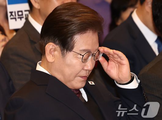 (서울=뉴스1) 김민지 기자 = 이재명 더불어민주당 대통령 후보가 8일 오후 서울 영등포구 중소기업중앙회에서 열린 선거대책위원회 직능본부 민생정책 협약식에 참석해 서류를 보고 있다. 2025.5.8/뉴스1kimkim@news1.krCopyright ⓒ 뉴스1. All rights reserved. 무단 전재 및 재배포, AI학습 이용 금지.