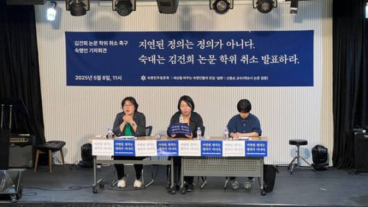 윤석열 전 대통령 부인 김건희 여사의 숙명여자대학교 석사학위 논문이 표절로 최종 판정된 지 73일이 지났는데도 학교 쪽이 징계 계획을 내놓지 않자, 숙명여대 구성원들이 학위 취소를 촉구했다.