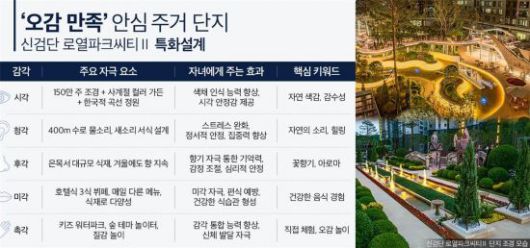 DK아시아가 조성한 '신검단 로열파크씨티Ⅱ'는 국내 최초로 5세대 명품 'K-가든'이라는 개념을 도입해 자연 친화적이면서도 감각적 체험이 가능한 공간을 구현했다. 아동 발달 전문가들에 따르면, 오감 자극 환경은 어린이의 인지 발달, 창의력, 정서 안정에 중요한 역할을 하는 것으로 알려져, 자녀 안심 단지로 주목받고 있다.