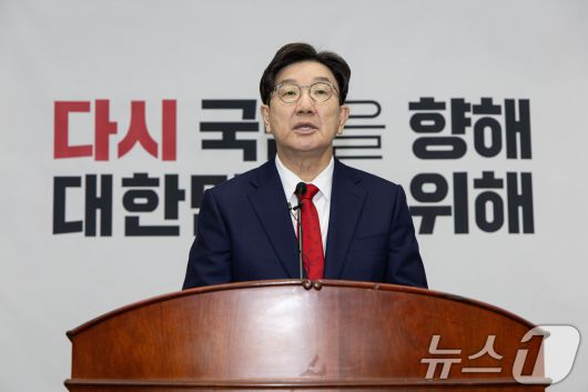 (서울=뉴스1) 이재명 기자 = 권성동 국민의힘 원내대표가 8일 오후 서울 여의도 국회에서 열린 의원총회에서 발언을 하고 있다. 2025.5.8/뉴스1