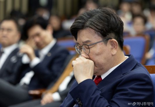 (서울=뉴스1) 이재명 기자 = 권성동 국민의힘 원내대표가 8일 오후 서울 여의도 국회에서 열린 의원총회에서 생각에 잠겨 있다. 2025.5.8/뉴스1 Copyright (C) 뉴스1. All rights reserved. 무단 전재 및 재배포, AI학습 이용 금지. /사진=(서울=뉴스1) 이재명 기자 |