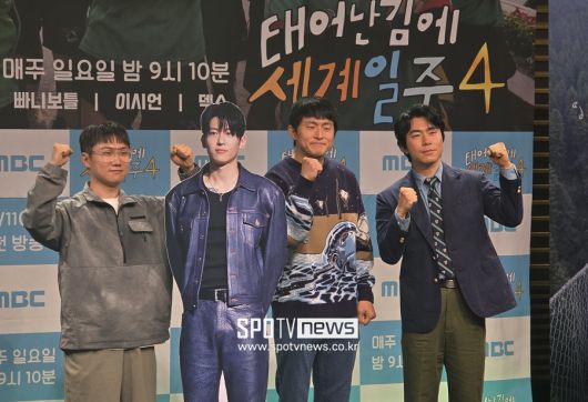 8일 오후 서울 상암동 MBC 사옥에서 MBC 새 예능 프로그램 '태어난 김에 세계일주4'(태계일주4) 제작발표회가 열린 가운데 기안84와 이시언, 빠니보틀 등은 일정 문제로 행사에 참석하지 못한 막내 덱스를 향한 칭찬을 쏟아냈다.