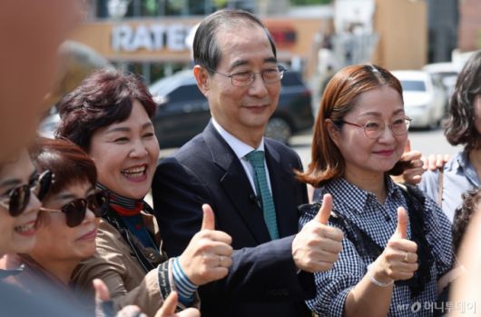 (구미=뉴스1) 공정식 기자 = 한덕수 무소속 대선 예비후보가 8일 오전 경북 구미시 박정희 전 대통령 생가를 찾아 지지자들과 기념 촬영하고 있다. 2025.5.8/뉴스1 Copyright (C) 뉴스1. All rights reserved. 무단 전재 및 재배포, AI학습 이용 금지. /사진=(구미=뉴스1) 공정식 기자 |