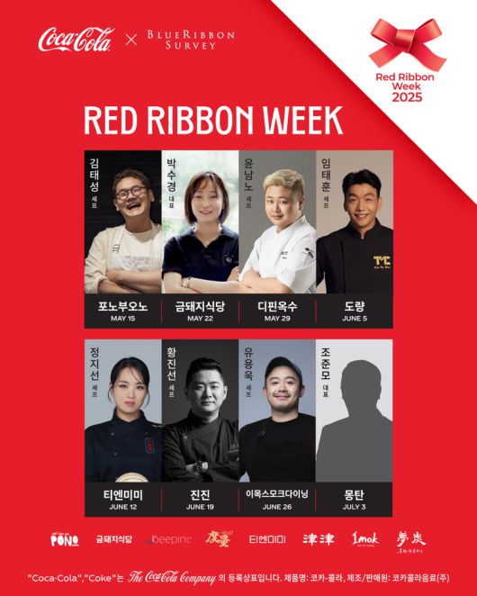코카콜라 관계자는 "레드리본 위크 2025는 한 끼 식사를 더욱 특별하게 만들어주는 코카콜라의 진가를 경험할 수 있는 기회가 될 것"이라며 "맛집 8곳에서 코카콜라와 함께하는 미식 경험으로 추억을 남기시길 바란다"고 말했습니다.