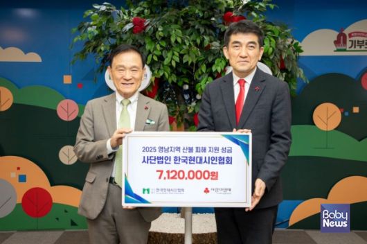사랑의열매 사회복지공동모금회(회장 김병준)는 사단법인 한국현대시인협회(이사장 제갈정웅)가 영남 지역 산불 피해 복구를 위해 성금 712만 원을 기부했다고 8일 밝혔다.