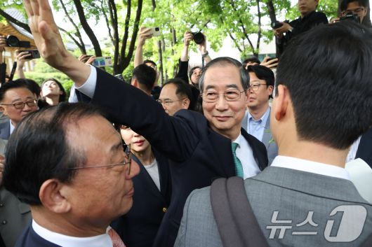 (서울=뉴스1) 안은나 기자 = 한덕수 무소속 대선 예비후보가 8일 오후 김문수 국민의힘 대통령 후보와 공개 회동을 하기 위해 서울 여의도 국회 강변서재로 향하고 있다.(공동취재) 2025.5.8/뉴스1 Copyright ⓒ 뉴스1. All rights reserved. 무단 전재 및 재배포, AI학습 이용 금지.