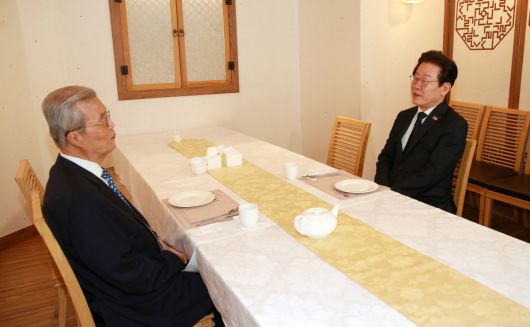 민주당 선대위는 "이 후보는 오늘 김 전 위원장과 오찬 회동을 했다"며 "이 후보는 안부 인사와 함께 대한민국이 옳은 길로 가기 위한 조언을 구했다"고 전했다.