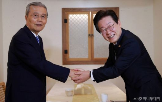 민주당에 따르면 이 후보는 이날 서울 모처에서 김 전 위원장을 만났다. 민주당 선거대책위원회 핵심 관계자는 "이 후보는 안부 인사와 함께 대한민국이 옳은 길로 가기 위한 조언을 구했다"며 "김 전 위원장은 이 후보에게 국민을 안심시키는 것이 중요하다며 준비를 잘하라는 당부를 했다"고 밝혔다.
