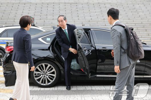 (서울=뉴스1) 안은나 기자 = 한덕수 무소속 대선 예비후보가 8일 김문수 국민의힘 대통령 후보와의 단일화 회동을 위해 서울 여의도 국회 강변서재에 도착하고 있다. (공동취재) 2025.5.8/뉴스1 Copyright ⓒ 뉴스1. All rights reserved. 무단 전재 및 재배포, AI학습 이용 금지.