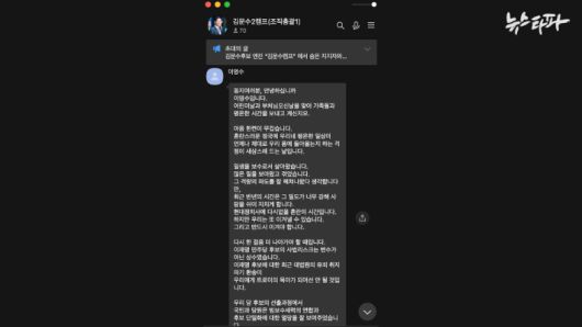 지난 대선 당시 상대 후보에 대한 악의적 허위·비방 콘텐츠를 만들어 유포한 조직을 이끈 이영수(윤석열 캠프 조직통합본부장)씨가 최근 국민의힘 김문수 대선 후보 캠프에 합류한 사실이 확인됐습니다. 이번에도 그가 맡은 직책은 '조직통합본부장'입니다. 김문수 캠프는 주요 보직자 명단을 이르면 내일 발표할 것으로 알려졌습니다.