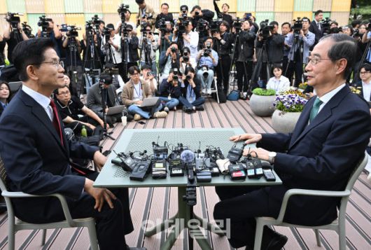 [이데일리 방인권 기자] 김문수 국민의힘 대선 후보가 한덕수 무소속 대선 예비후보와의 단일화를 위한 2차 회동을 하기 위해 8일 국회 사랑재로 향하던 중 한 후보의 지지자가 김 후보에게 항의하자 관계자들이 저지하고 있다.