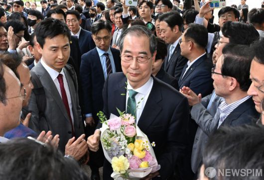 [서울=뉴스핌] 최지환 기자 =한덕수 무소속 예비후보가 8일 오후 김문수 국민의힘 대선후보와 단일화 관련 회동을 위해 이동하고 국회 사랑재로 이동하고 있다. 2025.05.08 choipix16@newspim.com