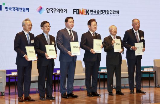 이재명 더불어민주당 대선 후보를 향해 경제5단체장이 일본과의 경제협력을 촉구하고 상속세·증여세 부담 완화를 요청했다.