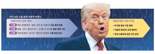 도널드 트럼프 행정부가 데이터센터와 인공지능(AI) 모델 훈련에 쓰이는 AI칩 수출 물량을 국가별로 차등화한 '바이든표' 수출 통제 정책을 전격 철회한다. 조 바이든 정부 임기 말에 갑자기 도입된 이 규제가 너무 복잡한 데다 미국 AI 산업 혁신을 저해한다는 업계 목소리를 반영한 조치로 풀이된다.