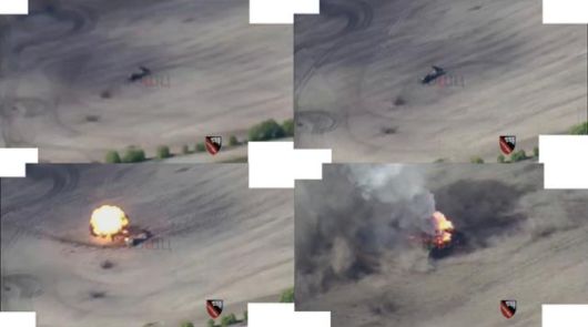 북한 로켓 시스템 KN-09로 추정되는 무기가 파괴되는 장면. 다만 이 영상을 공개한 군사전문가는 해당 무기가 KN-09보다는 러시아의 9K512 우라간-1M 미사일로 보인다고 주장했다. 야쿠브 야노프스키 X 캡처 |