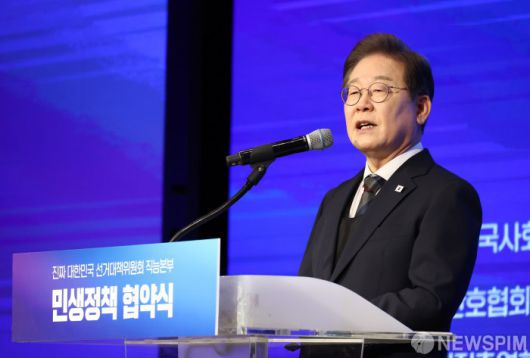 [서울=뉴스핌] 최지환 기자 = 이재명 더불어민주당 대선후보가 8일 오후 서울 영등포구 중소기업중앙회에서 열린 더불어민주당 중앙선거대책위원회 직능본부 민생정책 협약식에서 발언하고 있다. 2025.05.08 choipix16@newspim.com |