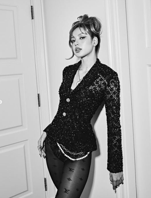 리사의 이번 룩은 미국 예술가 헨리 테일러의 예술 작품에서 영감을 받아 제작됐으며, 몸에 꼭 맞는 바디수트와 자켓, 그리고 모노그램 스타킹만으로 완성됐다. 가방 역시 검은색 가죽에 흰색 루이비통 모노그램이 새겨진 백을 들었다.