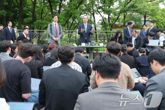공개 회동 마치고 백브리핑 하는 한덕수