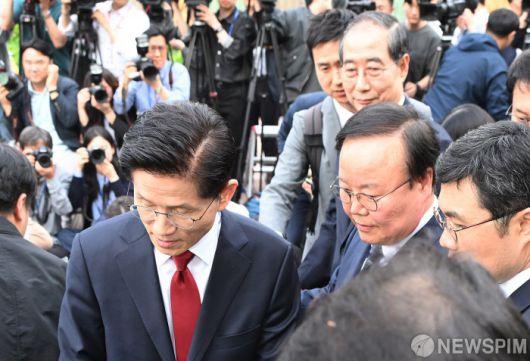 [서울=뉴스핌] 최지환 기자 = 김문수 국민의힘 대선 후보와 한덕수 무소속 대선 예비후보가 8일 국회 사랑재에서 만나 후보 단일화를 위한 2차 회동을 마친 뒤 이석하고 있다. 2025.05.08 choipix16@newspim.com