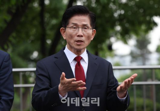 [이데일리 방인권 기자] 김문수 국민의힘 대선 후보가 8일 서울 여의도 국회 사랑재의 한 카페에서 무소속 한덕수 대선 예비후보와 후보 단일화 관련 회동을 마친 뒤 취재진 질문에 답하고 있다.