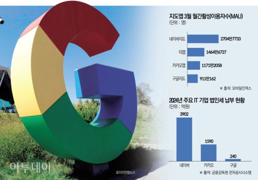 네이버와 카카오는 지난해 각각 3902억 원, 1590억 원의 법인세를 낸 반면 구글이 납부한 법인세는 240억 원에 불과하다. 온라인동영상서비스(OTT), 앱 마켓, 음원, 검색 등 분야에서 구글의 국내 영향력을 감안하면 구글의 한국 매출은 네이버를 웃돌 것으로 추정되지만 대부분의 국내 매출을 해외 법인 매출로 처리해 상대적으로 낮은 법인세를 내고 있다는 비판이 제기되고 있다.