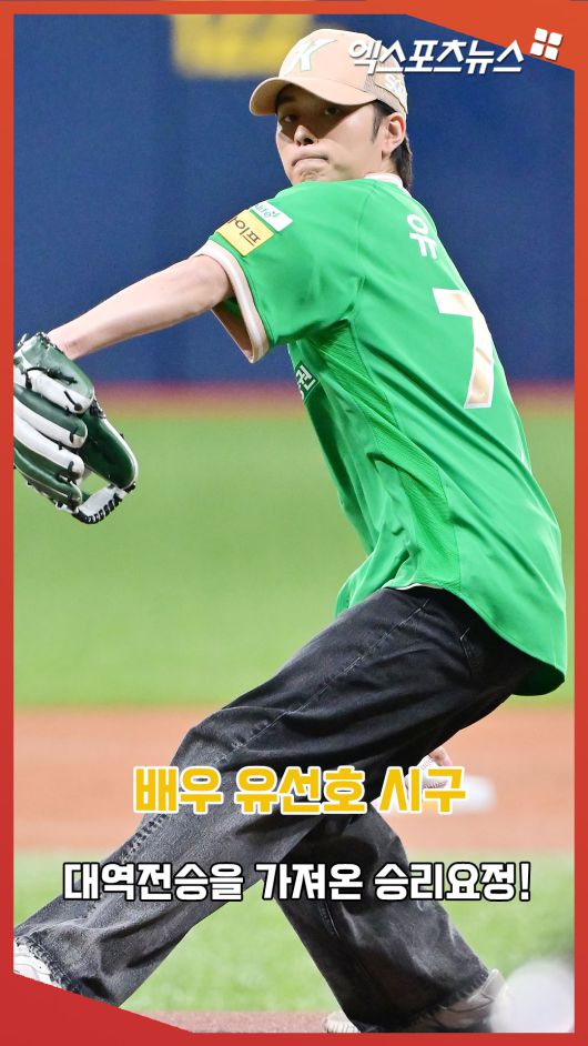 (엑스포츠뉴스 고척, 김한준 기자) 7일 오후 서울 구로구 고척스카이돔에서 열린 '2025 신한 SOL Bank KBO리그' KIA 타이거즈와 키움 히어로즈의 경기, 경기 전 배우 유선호가 시구에 임하고 있다.김한준 기자 kowel@xportsnews.com