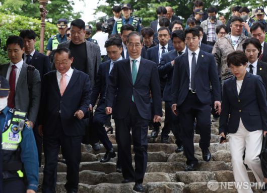 [서울=뉴스핌] 최지환 기자 = 한덕수 무소속 대선 예비후보가 8일 오후 여의도 국회 사랑재에서 열린 김문수 국민의힘 대선 후보와 단일화 관련 회동을 마치고 회동장을 나서고 있다. 2025.05.08 choipix16@newspim.com