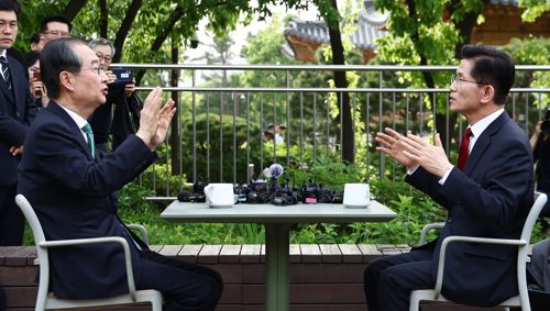 김문수-한덕수 2차 회동 (서울=연합뉴스) 박동주 기자 = 국민의힘 김문수 대선후보와 무소속 한덕수 대선 예비후보가 8일 서울 국회 사랑재에 위치한 커피숍에서 만나 회동하고 있다. 2025.5.8 [공동취재] pdj6635@yna.co.kr (끝) <저작권자(c) 연합뉴스, 무단 전재-재배포, AI 학습 및 활용 금지> |