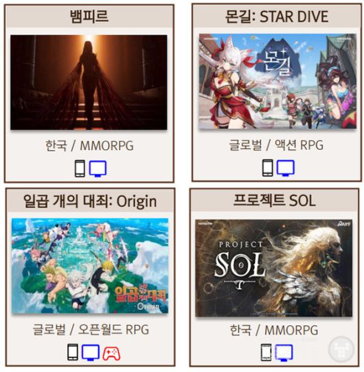 넷마블은 2분기에도 신작을 출시하며 실적 반등세를 이어간다는 계획이다. 넷마블은 2분기에는 '세븐나이츠 리버스'를 시작으로 '왕좌의 게임: 킹스로드'(글로벌 출시)와 '킹 오브 파이터 AFK'를 출시할 예정이며 하반기에는 '일곱 개의 대죄: 오리진'과 '몬길: 스타다이브', '프로젝트 SOL' 등 5개의 신작을 선보일 예정이다.