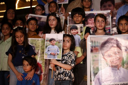 친구 잃은 파키스탄 아이들 7일 파키스탄 페샤와르에서 어린이들이 인도의 미사일 공격으로 인한 희생자 추모 집회에 참석하고 있다. EPA연합뉴스 |
