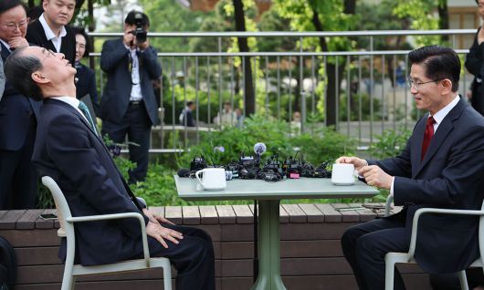 김 후보와 한 후보는 이날 오후 4시30분부터 63분가량 서울 여의도 국회 사랑재 옆 카페에서 1 대 1로 만나 단일화 관련 대화를 나눴다. 이날 회동은 비공개로 진행된 전날과 달리 처음부터 끝까지 공개로 진행됐다.