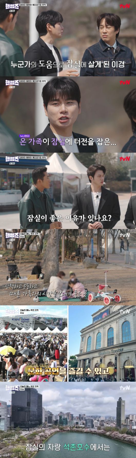 이이경은 "콘서트도 잠실에서 다 한다고 보면 된다. 뮤지컬 다 하지"라며 공감했고, 차태현은 "야구장 빼면 안 된다"라며 못박았다. 이이경은 "석촌호수도 있으면서 벚꽃까지 다"라며 덧붙였다.